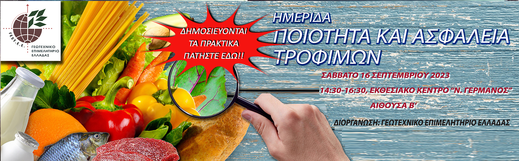 Η Ειδική Υπηρεσία Διαχείρισης του Σ.Σ. ΚΑΠ του ΥΠ.Α.Α.Τ. και το Γεωτεχνικό Επιμελητήριο Ελλάδας συνδιοργανώνουν Τεχνική Συνάντηση για το Στρατηγικό Σχέδιο Κοινής Αγροτικής Πολιτικής 2023-2027, τα Σχέδια Βελτίωσης και τα χρηματοδοτικά εργαλεία, την Παρασκευή 3 Απριλίου 2026, στην Αίθουσα «Μανόλης Αναγνωστάκης» (Δημαρχιακό Μέγαρο), από 10:00 –14:00.
